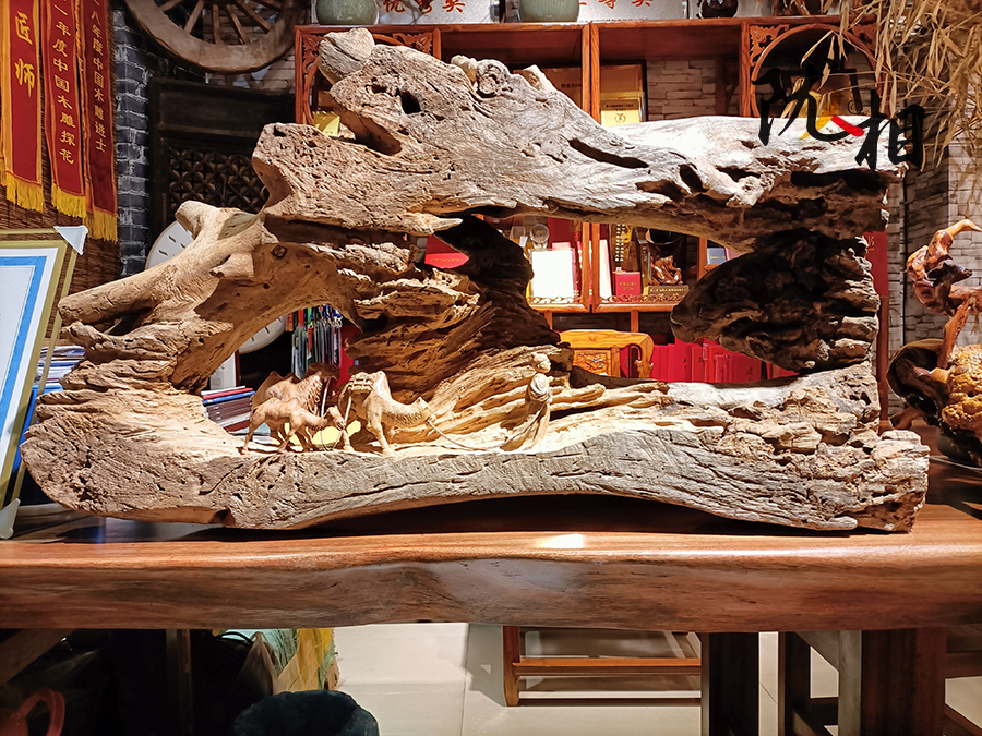 俗話說(shuō)“朽木不可雕”,但經(jīng)根雕藝人甘博巧手雕琢,便會(huì)枯木逢春。