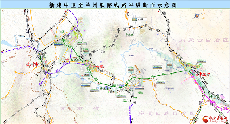 據(jù)了解,銀蘭高鐵中蘭段經(jīng)白銀市靖遠縣北灘鎮(zhèn)進入甘肅境內(nèi),向南途經(jīng)白銀市平川區(qū)、白銀區(qū),蘭州市皋蘭縣、蘭州新區(qū)及永登縣,新建北灘站、平川西站、靖遠北站、白銀南站、秦王川站5座車站。線路向西連接中川城際鐵路進入蘭州西客站,向北直達中川機場并連通蘭張三四線,可經(jīng)由武威、金昌,在張掖與蘭新高鐵連通,向東直通銀川,可轉(zhuǎn)向慶陽至西安,構(gòu)建了蘭州到慶陽、平?jīng)龅鹊貐^(qū)的高鐵新通道。