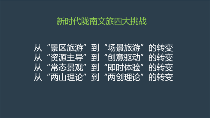 作為具備后發(fā)優(yōu)勢(shì)的隴南,在推進(jìn)文旅康養(yǎng)產(chǎn)業(yè)發(fā)展的過(guò)程中,我們必須認(rèn)識(shí)和應(yīng)對(duì)這四大轉(zhuǎn)變或調(diào)整,“謀定而動(dòng)”,否則,如果我們還以傳統(tǒng)的方式追求建設(shè)景區(qū),有可能做出來(lái)的大項(xiàng)目,是過(guò)時(shí)的,過(guò)期的,是被當(dāng)下的旅游消費(fèi)者所遺棄的。