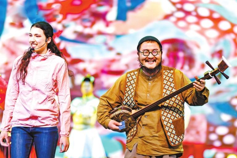 音樂響起,舞蹈《絲路之光》以漢唐雄風暢迎四海賓朋,鏗鏘有力的武術(shù)表演《問道崆峒》引發(fā)陣陣掌聲、雜技《生命禮贊》讓觀眾的心懸在了半空中又落下、敦煌復原服飾秀《絕色敦煌》讓觀眾“沉浸式”感受黃河文化、長城文化、絲路文化的交融與碰撞。演員們身著民族服飾載歌載舞集中展示甘肅省少數(shù)民族的獨特人文風情和各族人民對美好生活的禮贊。除此之外,甘肅本土民謠音樂人張尕慫和英國音樂人肖恩聯(lián)合創(chuàng)作的《我畫個甘肅給你看》,通過音樂舞蹈向海內(nèi)外游客發(fā)出暢游如意甘肅的誠摯邀請。