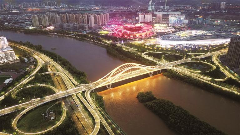 蘭州,不僅是“全國(guó)文明城市”“國(guó)家園林城市”“中國(guó)最具投資吸引力城市”“營(yíng)商環(huán)境創(chuàng)新城市”“最具文旅投資價(jià)值城市”,更成為了國(guó)內(nèi)最受歡迎的十大避暑城市之一和游客數(shù)量增長(zhǎng)最快的十大“網(wǎng)紅城市”之一。圖為深安大橋和奧體中心、萬(wàn)達(dá)茂美麗夜景。