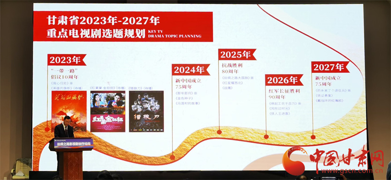 論壇期間,國家廣電總局電視劇司發(fā)布了“一帶一路”倡議10周年重點(diǎn)電視劇項(xiàng)目。甘肅省廣電局舉行了甘肅省影視資源及重點(diǎn)選題項(xiàng)目推介,并與華策影視集團(tuán)簽署了戰(zhàn)略合作協(xié)議,部分嘉賓圍繞論壇主題作了主旨演講。