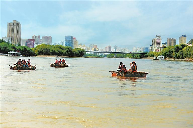 入秋以來,蘭州文旅市場持續(xù)火熱,不少游客前來旅游。9月14日,游客在黃河蘭州段乘著羊皮筏子漂流黃河,感受與母親河的“零距離”接觸。