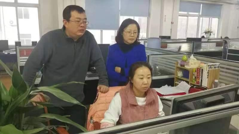 魏彤欣(后排右一)指導(dǎo)編輯出版工作。阜新市傳媒中心供圖