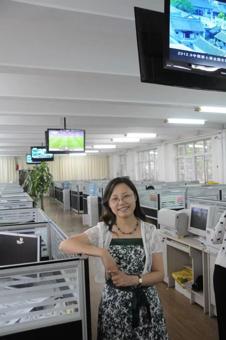 魏彤欣在阜新日?qǐng)?bào)采編大廳留影。