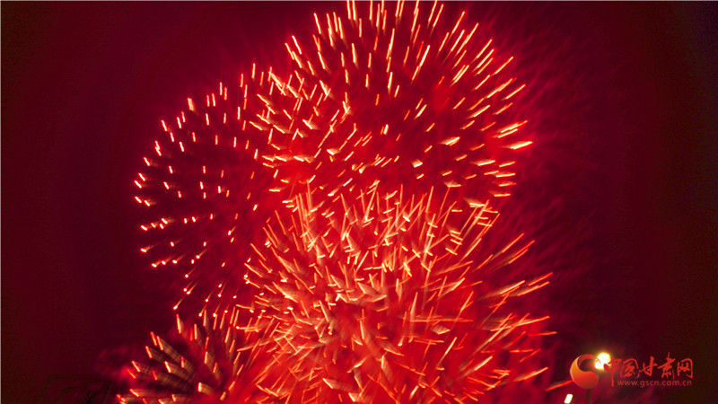以焰火為筆,以星空作畫。晚8時許,焰火在夜幕中徐徐點亮,一朵朵、一束束焰火騰空而起,直沖云霄、綻放出耀眼的光芒。洶涌澎湃的銀河瀑布如金似玉從天庭倒掛,飛流而下,層層疊疊。依次從地面升起的各種禮花,如明珠,似繁星在空中閃爍,綻放出一幅幅絢麗壯觀、色彩繽紛的美麗畫卷。璀璨絢爛的煙花與小城的夜景、群眾的歡聲笑語、相機的快門聲交相輝映,大家都沉浸于濃濃“年味”和新春喜悅中。