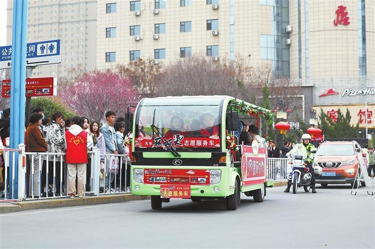 3月16日,游客乘坐免費的“天水麻辣燙志愿服務車”前往景區(qū)。