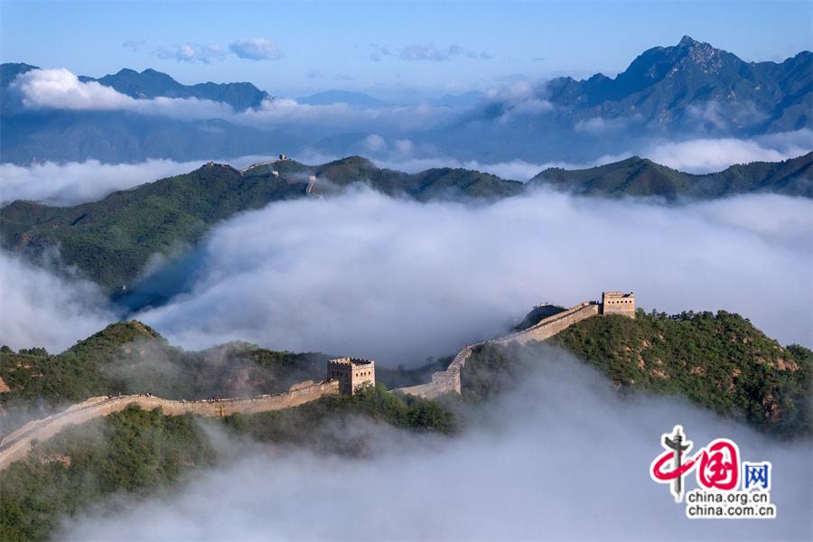 5月26日,雨后早晨,河北省承德市灤平縣境內的金山嶺長城出現(xiàn)云海奇觀,變化莫測間。