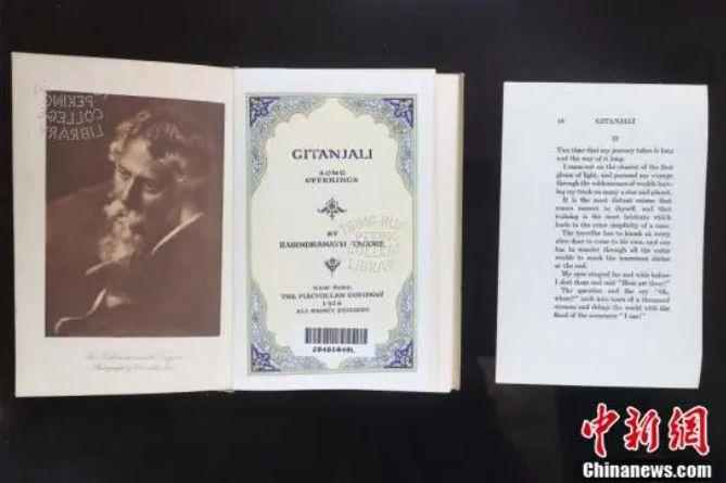 圖為清華大學(xué)圖書館收藏的紐約1916年英譯本泰戈?duì)栐娂都村壤?。中新社記?nbsp;易海菲 攝