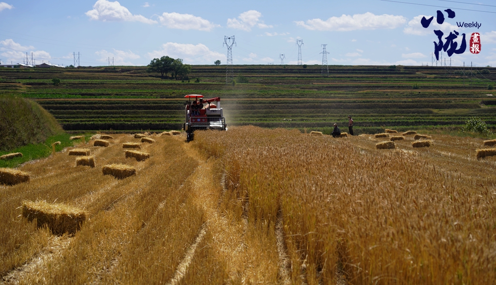 穗舞夏風(fēng),麥浪滾滾。一塊塊高標(biāo)準(zhǔn)糧田內(nèi),大型收割機(jī)開足馬力、轟鳴向前,小麥?zhǔn)崭?、麥穗脫粒、秸稈還田,一幅豐收景象。