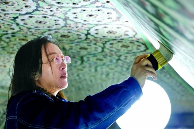 壁畫修復(fù)是一項極其精細的工作,需要智慧和耐力。柴宗香做壁畫保護修復(fù)技師14年了,她常在一個洞窟里戴著護膝,穿著棉衣,從早干到晚。