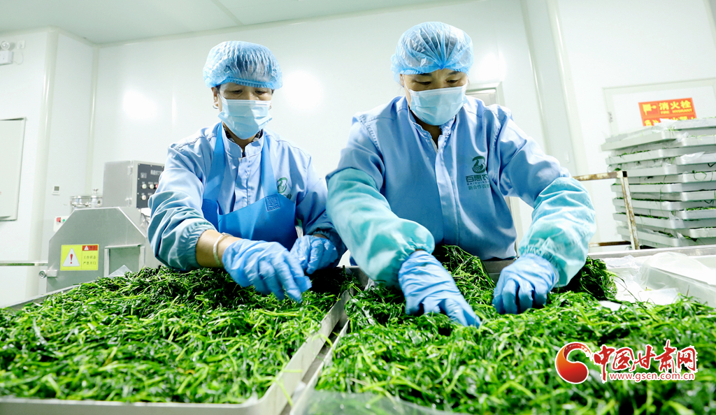 8月8日,臨澤縣沙河鎮(zhèn)一麥苗凍干粉生產(chǎn)線上,工作人員正在進(jìn)行分揀、清洗、高溫漂燙、翻晾裝盤(pán)、凍干研磨等生產(chǎn)工序,完成廣東、福建、上海、浙江等地客商的訂單。