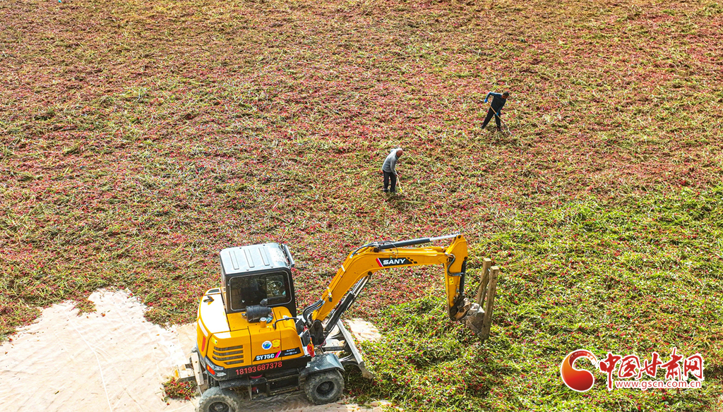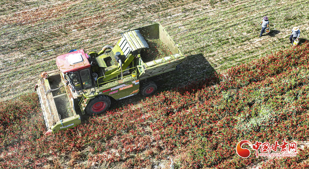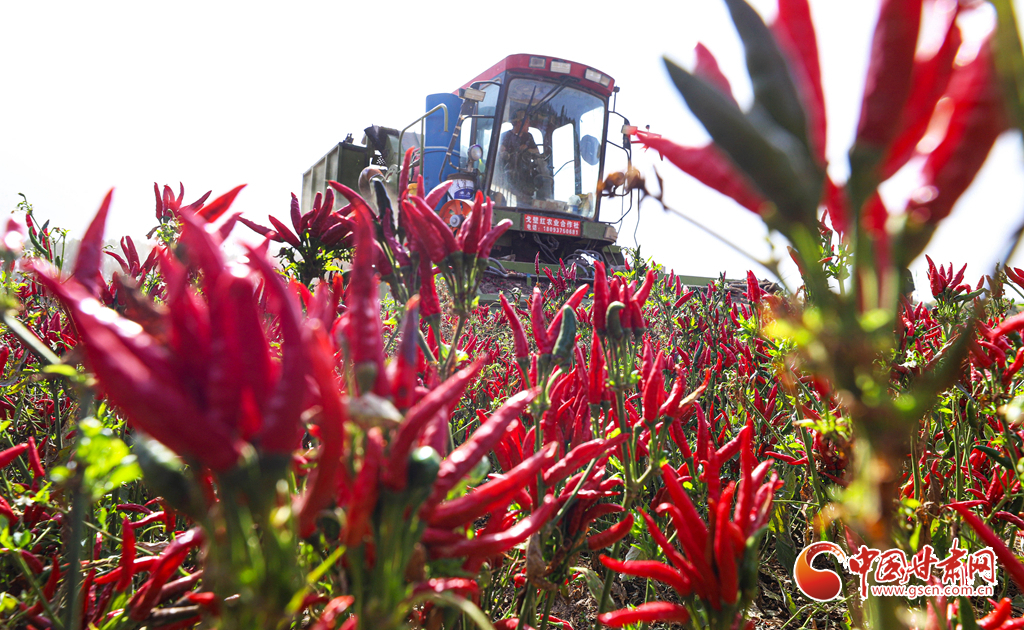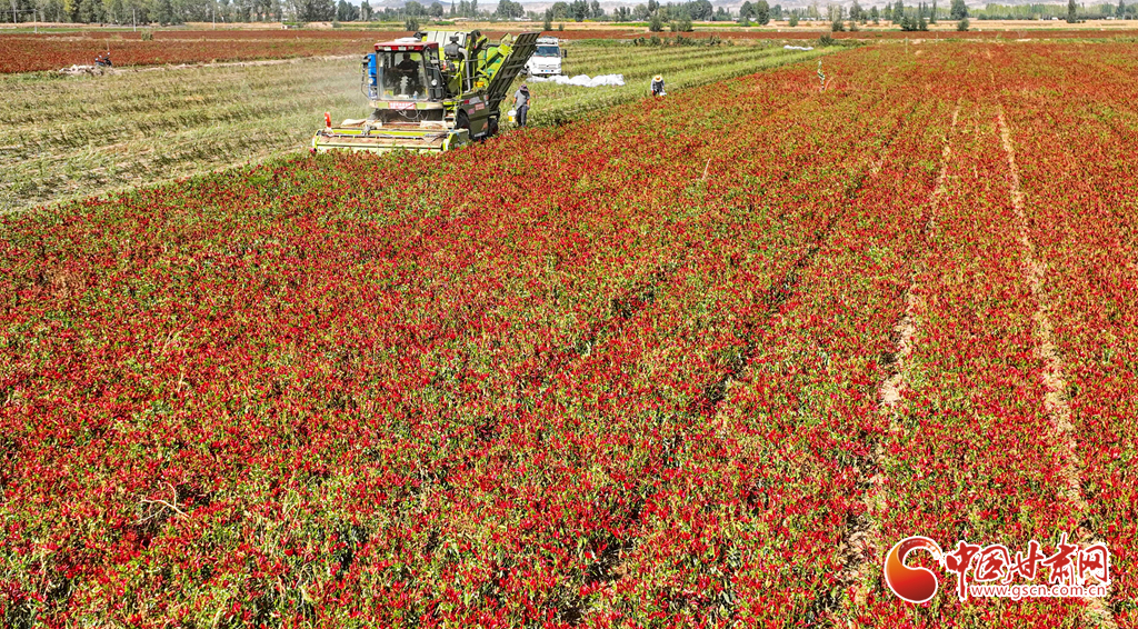 近日,臨澤縣平川鎮(zhèn)種植的3900多畝朝天椒進(jìn)入采收期,朝天椒采收機(jī)馬達(dá)轟鳴,在田地里來(lái)回穿梭,快速采收。種植農(nóng)戶(hù)們把采收的朝天椒運(yùn)往晾曬場(chǎng),經(jīng)過(guò)分揀、晾曬、包裝后發(fā)往山東、河南、安徽、重慶、貴州等地訂單客戶(hù)手中。