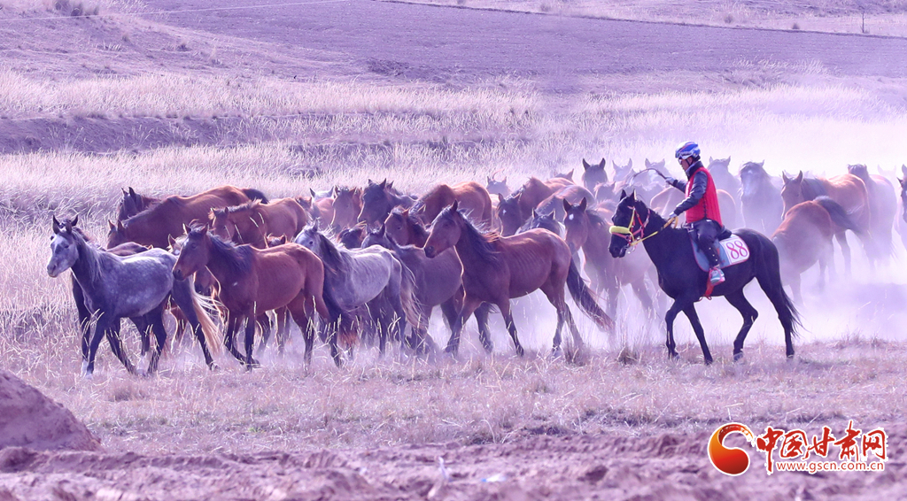 近日,位于祁連山下的甘肅省張掖市山丹縣一賽馬產業(yè)園內,騎手們正在為游客表演精彩的馬術運動。