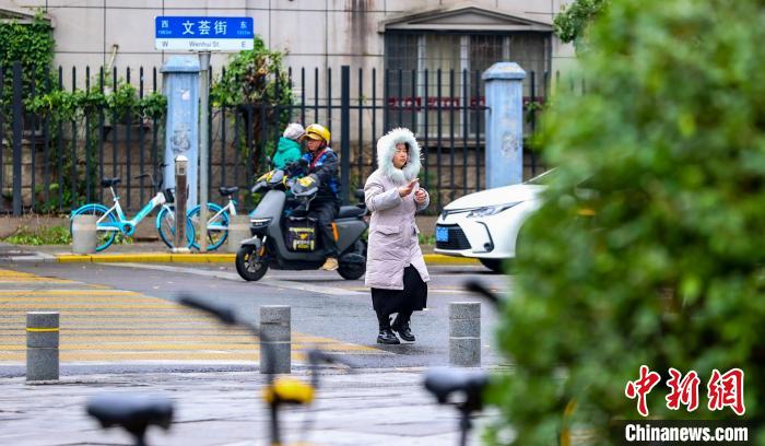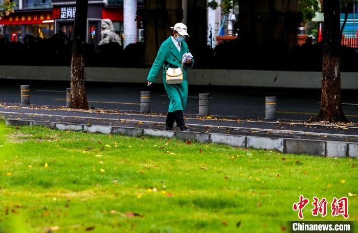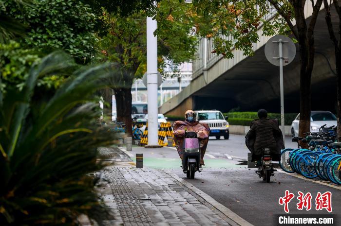 11月25日,市民在街頭出行。當日,武漢受寒潮天氣影響,氣溫下降明顯。武漢市氣象臺24日18時27分發(fā)布寒潮藍色預警信號,受較強冷空氣影響,預計24日至26日,武漢最低氣溫降幅達7℃~9℃。中新社記者 張暢 攝