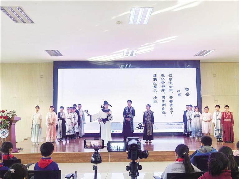 在講述杜甫生平的環(huán)節(jié),教師們慷慨激昂的語言,配合著精心設計的場景和道具,生動地展現(xiàn)了詩人從步入仕途、卷入官場糾葛、流離失所直至孤舟病逝的坎坷歷程。學生們也被這種氛圍深深感染,他們專注地聽著,眼中閃爍著對詩人命運的同情和對詩人精神的敬仰。