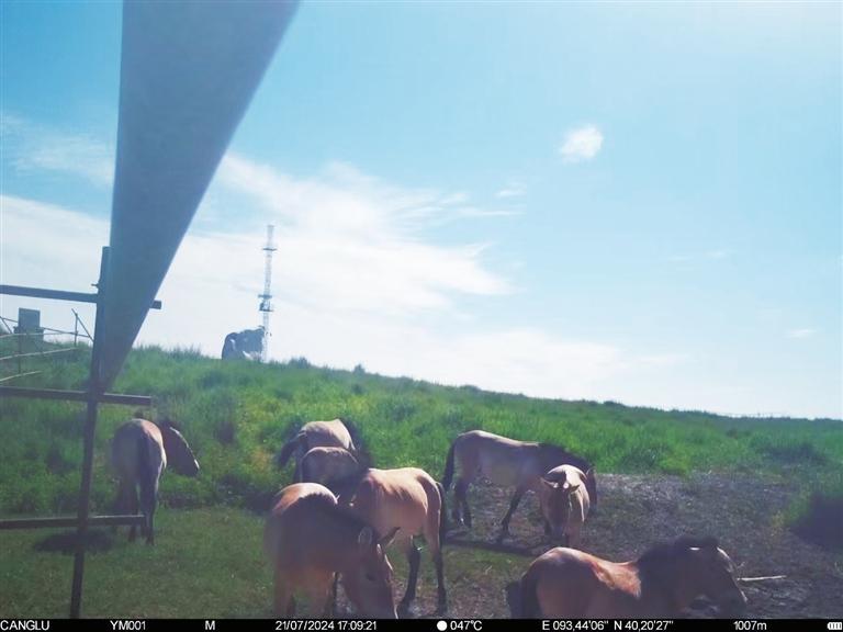 近日,甘肅敦煌西湖國家級自然保護區(qū)管護中心工作人員整理紅外相機拍攝畫面時,發(fā)現(xiàn)拍攝到普氏野馬“哺乳”的清晰影像。畫面拍攝于今年7月下旬,有8匹普氏野馬繁殖群正在馬圈灣濕地的飲水泉附近活動,其中有一匹小馬駒滿足地吸吮著母馬的乳汁。據監(jiān)測,該小馬駒出生于6月上旬,畫面中約已有一個半月大小,身體健康,毛色光亮。這個繁殖群領地范圍主要從馬圈灣西觀景臺至馬圈灣東高地,該區(qū)域可采食物種類豐富、水源充沛,是適合普氏野馬生活的美麗家園。普氏野馬是國家一級重點保護動物,常棲息于山地、草原和荒漠,性機警、善奔跑。近年來,隨著敦煌西湖保護區(qū)生態(tài)環(huán)境保護力度加大,生態(tài)環(huán)境質量持續(xù)改善,群眾保護野生動植物的意識不斷增強,使野生動物活動范圍不斷擴大,種群數量不斷增加。截至目前,敦煌西湖保護區(qū)內普氏野馬種群數量已達166匹。