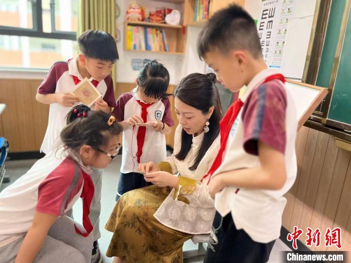 6月,國(guó)家級(jí)非物質(zhì)文化遺產(chǎn)代表性項(xiàng)目民間繡活(夏布繡)市級(jí)代表性傳承人吳婉菁正在給幾位學(xué)生展示夏布繡。(受訪(fǎng)者供圖)