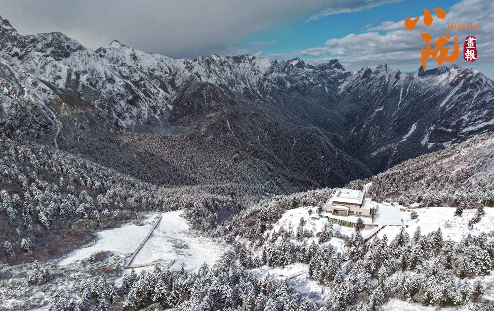 積雪如同軟綿綿的地毯鋪滿了整個(gè)官鵝溝,陽(yáng)光透過(guò)云層照射在這片被雪覆蓋的世界,閃爍著溫柔的光芒。