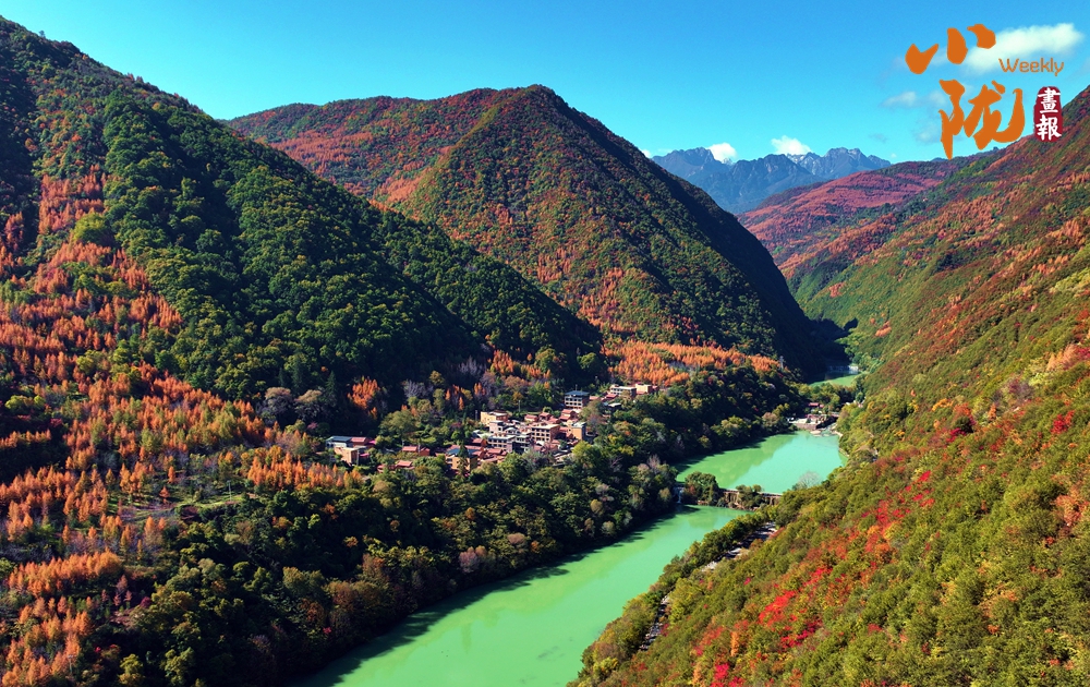 初冬的官鵝溝,秋景仍不謝幕,燦金火紅,深綠赭褐,多情的色彩渲染出別樣韻味,一切依然是溫暖的模樣。
