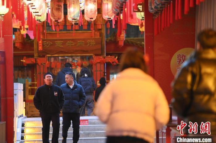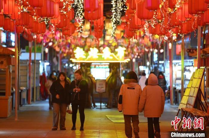 1月13日晚,甘肅敦煌夜市內(nèi),游人感受新春燈飾。據(jù)了解,從2024年12月1日至2025年2月28日,當(dāng)?shù)伉Q沙山月牙泉、玉門(mén)關(guān)、敦煌雅丹世界地質(zhì)公園等景區(qū)對(duì)國(guó)內(nèi)外所有游客免門(mén)票,莫高窟門(mén)票實(shí)行半價(jià)優(yōu)惠,開(kāi)放洞窟由8個(gè)增加至10個(gè),為游客提供了更為豐富的觀賞內(nèi)容。中新社記者 李亞龍 攝
