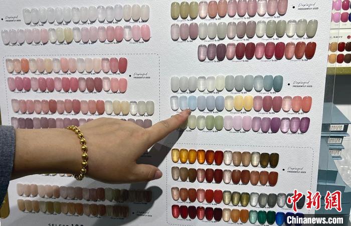 2月17日,在山東煙臺一家美甲店,顧客在選擇顏色。王嬌妮 攝