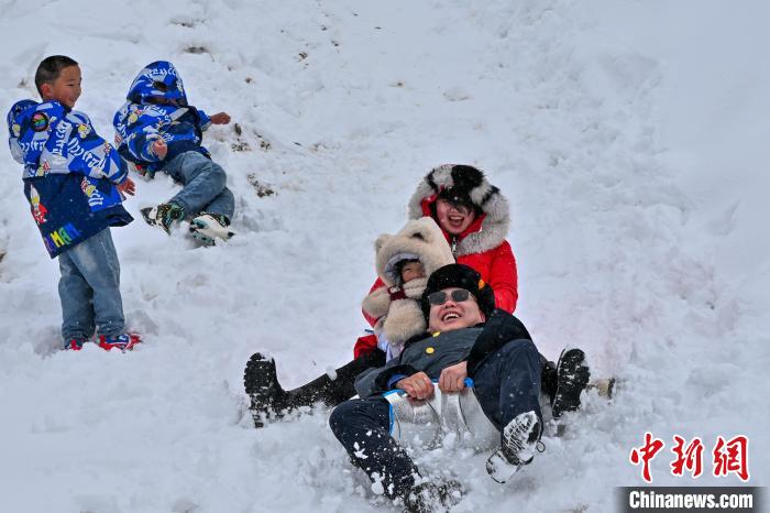 3月2日,云南省迪慶藏族自治州香格里拉市迎降雪天氣,市民自制雪板樂(lè)享雪趣。李嘉嫻 攝