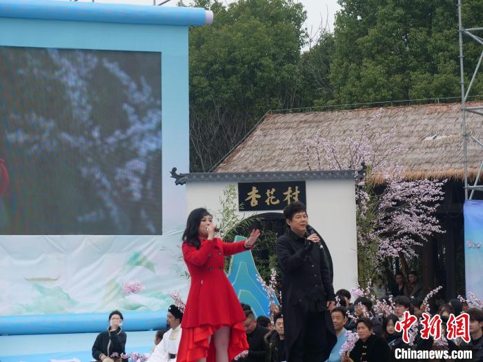 2025中國農(nóng)民詩會暨第十屆杏花村文化旅游節(jié)16日在安徽池州啟幕,臺灣知名歌手熊天平偕妻子楊洋聯(lián)袂獻(xiàn)唱《天涯共此時》等歌曲。