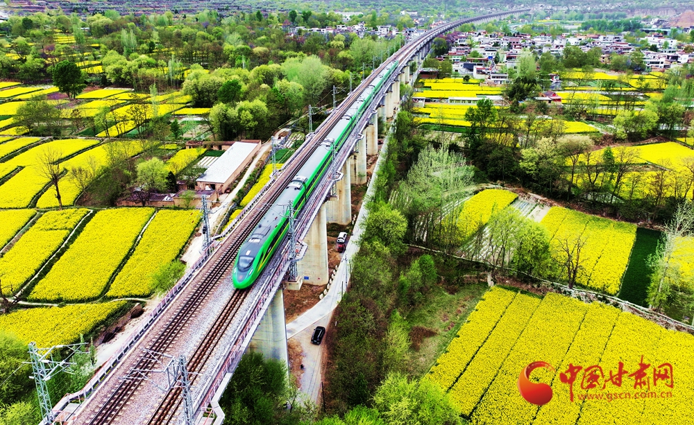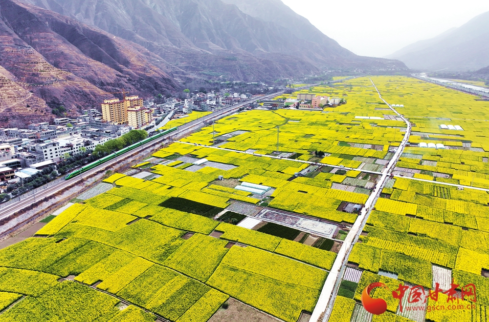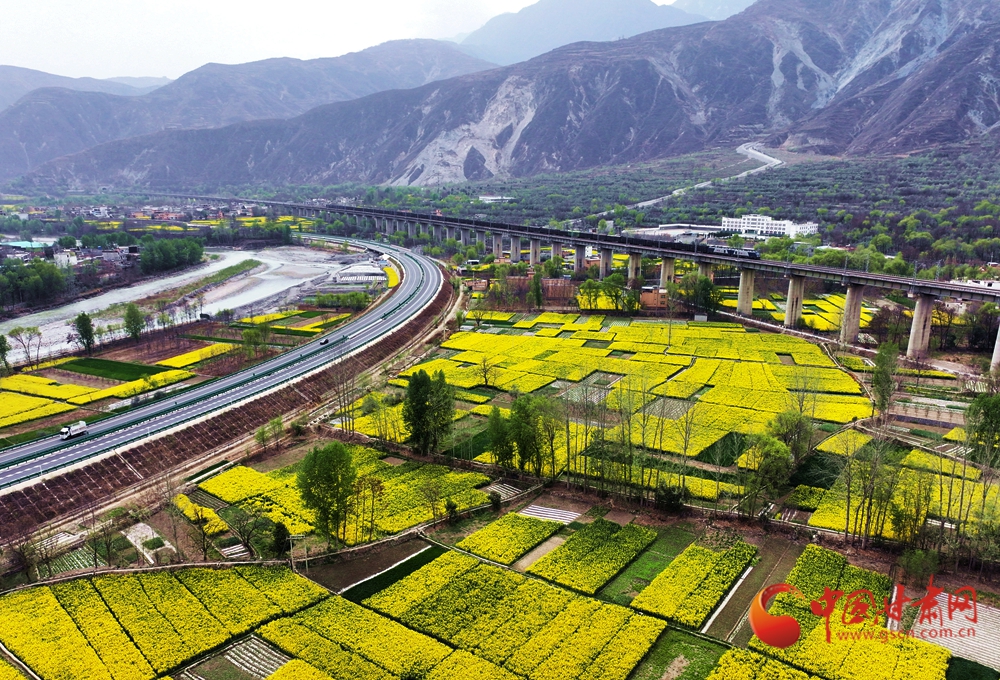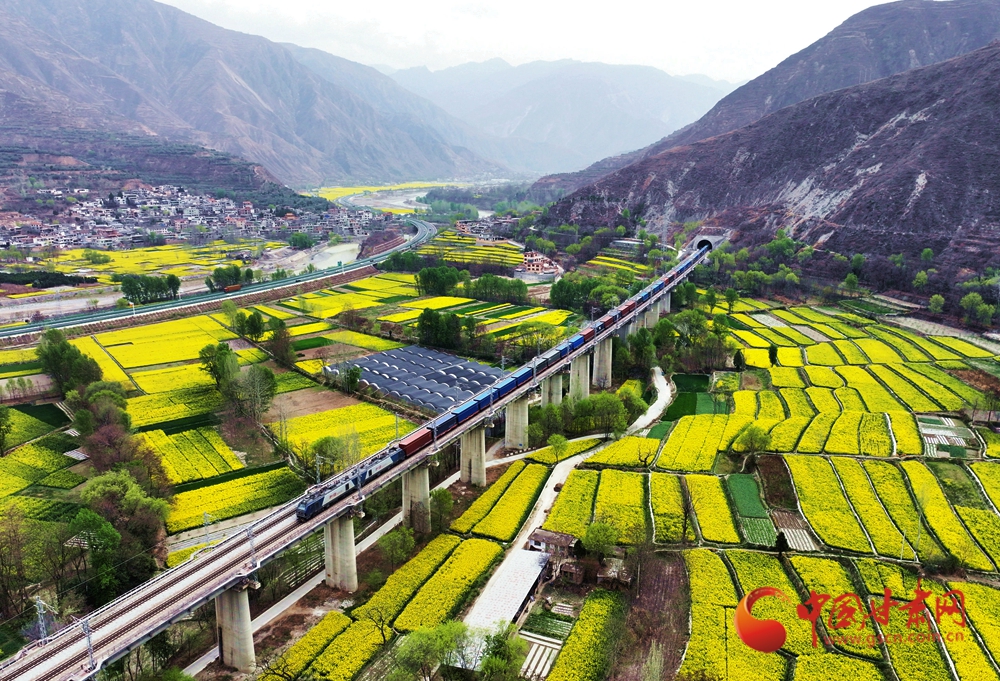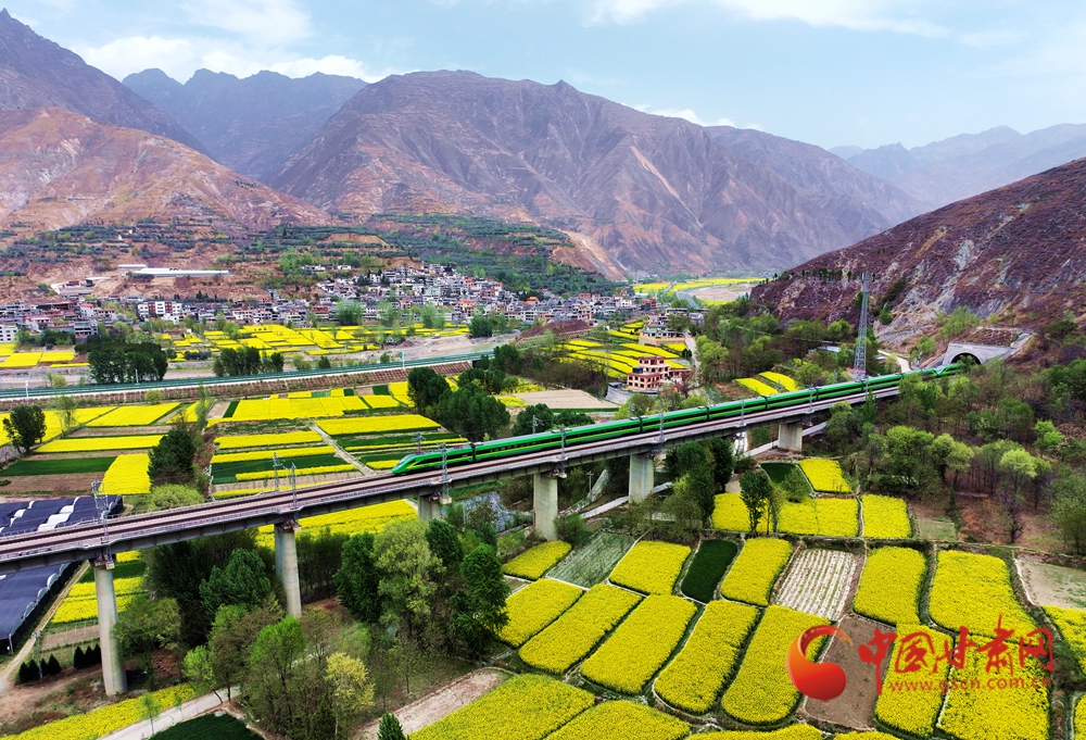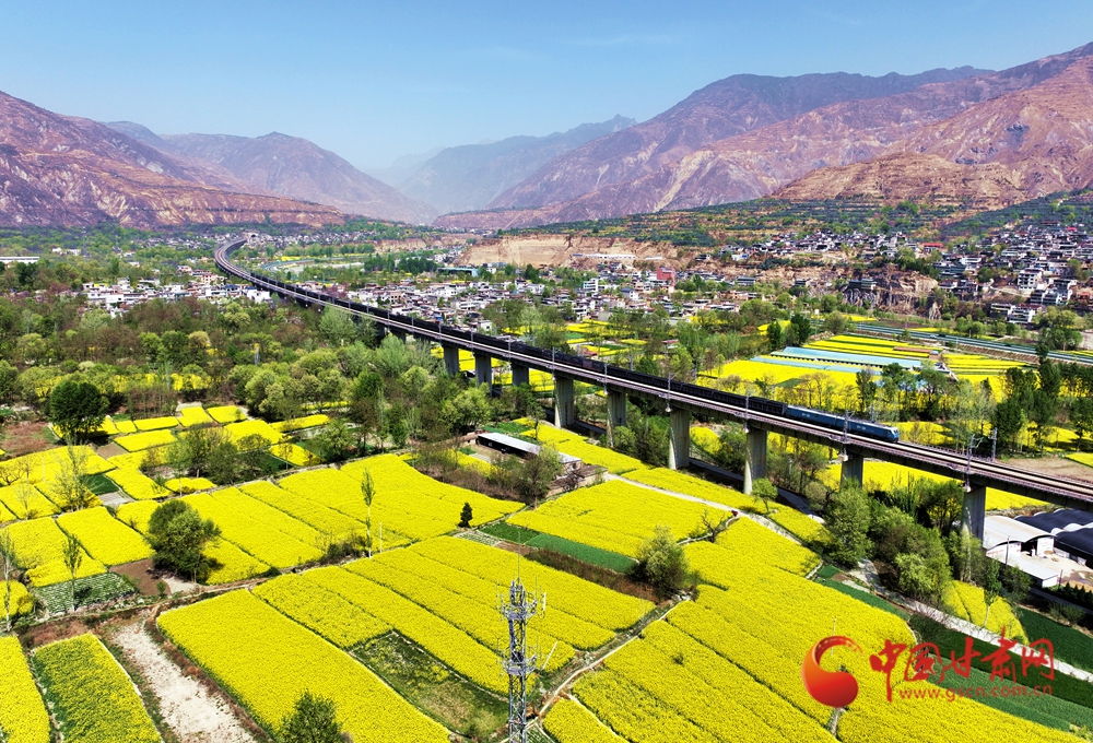 近日,隨著氣溫回升,武都、宕昌白龍江沿岸的油菜花競(jìng)相綻放,迎來(lái)最佳觀賞期,蘭渝鐵路列車在花海中穿梭,宛如一幅絕美的春日畫(huà)卷。