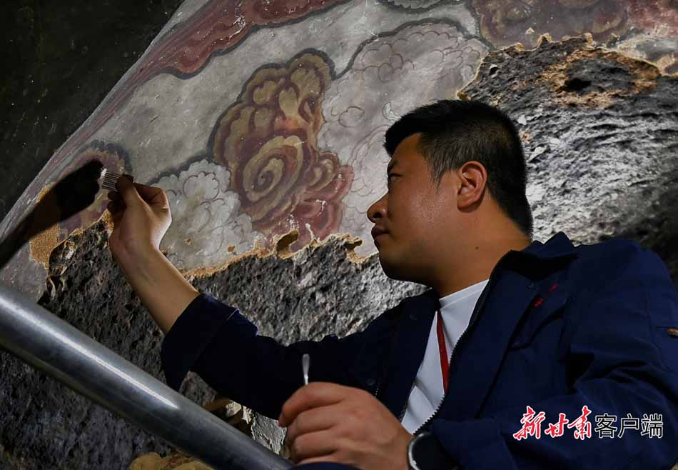 與窟外喧囂不同,在第30窟內,身著工裝的文物修復師緊握刀柄、輕刮泥土,讓壁畫和塑像重現昔日光彩。他們用巧手和匠心,靜靜地觸摸著“光陰的故事”。