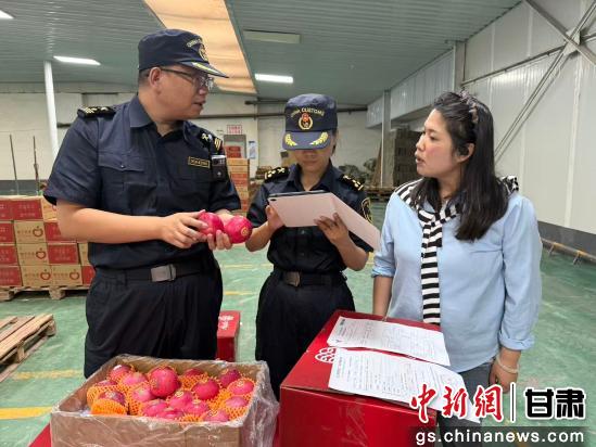 圖為8月底,蘭州海關(guān)所屬平?jīng)龊jP(guān)關(guān)員開展出口蘋果監(jiān)管。周龍 攝