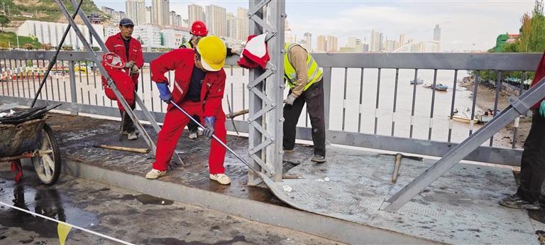 中國甘肅網10月13日訊 據蘭州晚報報道 為提升城市基礎設施品質,保障市民游客通行安全,蘭州市市政工程服務中心于10月11日正式啟動中山橋人行道橡膠板更換工程。