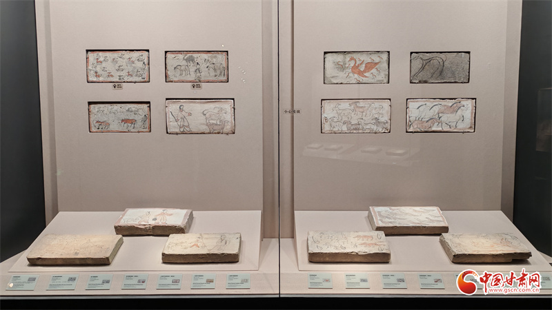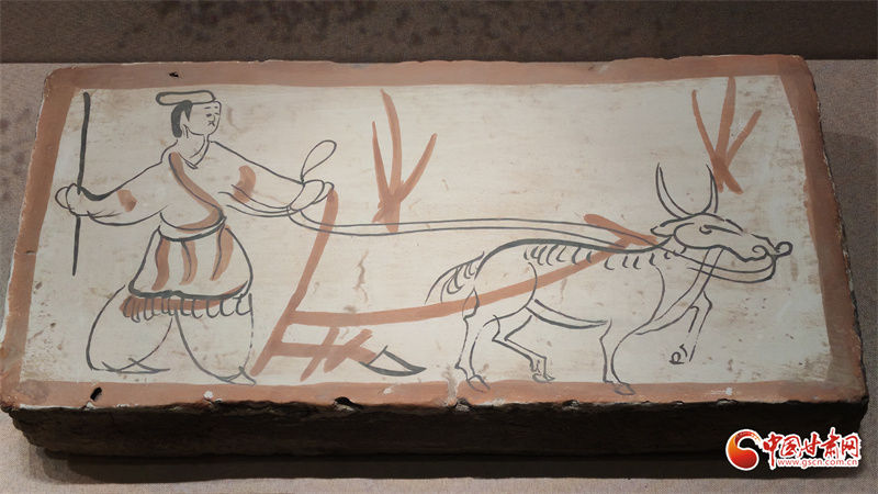 在博物館的“古冢丹青——高臺魏晉十六國時期墓葬壁畫藝術(shù)陳列”展廳里,記者看到,《二牛耕地畫像磚》生動再現(xiàn)了當(dāng)時的農(nóng)耕技術(shù):兩頭耕牛架著直轅犁,后隨的男子一手扶犁一手揚(yáng)鞭,展現(xiàn)了典型的“二牛抬杠”耕作方式?!赌谅箞D壁畫磚》則描繪了古人放牧鹿群的獨(dú)特場景,為研究當(dāng)時的畜牧業(yè)發(fā)展提供了珍貴資料。