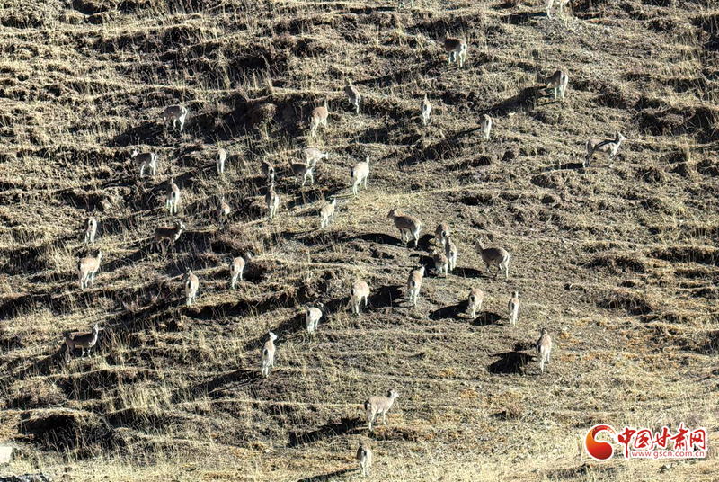 近日,民樂縣大河口自然保護(hù)站扁都口資源管護(hù)站人員于高海拔區(qū)域日常巡護(hù)時(shí),邂逅一大群巖羊在山坡覓食、奔跑的珍貴場景,巖羊數(shù)量約50只。