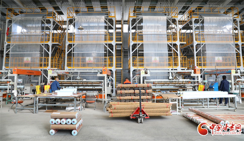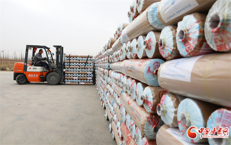 2月25日,在民樂工業(yè)園區(qū)內(nèi)一地膜生產(chǎn)車間,工人們正加足馬力生產(chǎn)地膜,助力春耕春播。