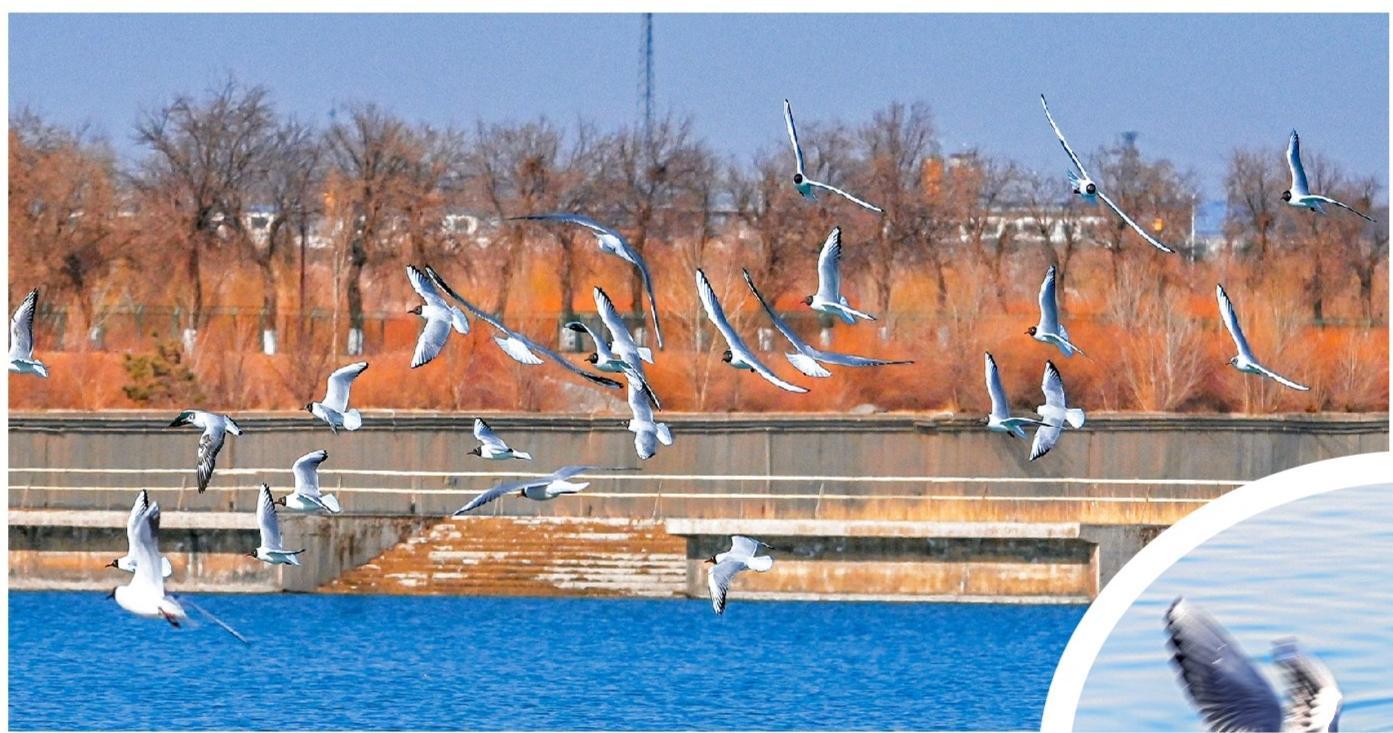 戈壁雄關(guān)迎鷗鳥,羽翼翩翩贊綠洲。連日來,大批鷗鳥分批飛抵我市討賴河生態(tài)文化景區(qū),或舒展輕盈舞姿與岸邊市民互動(dòng),或在氣盾壩上“列隊(duì)”小憩,或結(jié)伴翱翔感受春日暖陽,盡情享受著我市持續(xù)向好的生態(tài)環(huán)境。(照片由融媒體中心記者 李巍 攝)